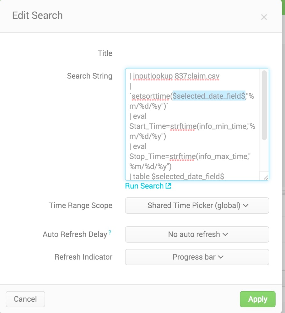 Notice that we also had to compare against “+infinity”. This is what Splunk uses for the info_max_time field when you select all time on the time picker. When you move this Splunk search to a Splunk panel, we will have to do a few more things before this works as you expect.