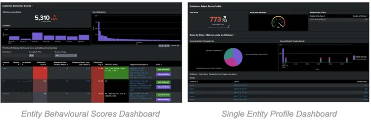 2. This indicator index is then used as the feed for user-defined scoring rules, which leverage criteria ranging from simple conditional logic (i.e. indicator value > 5000) to machine learning based anomaly detection, enabling identification of the anomalously behaving entities and attribute dynamic scores in the scoring index.