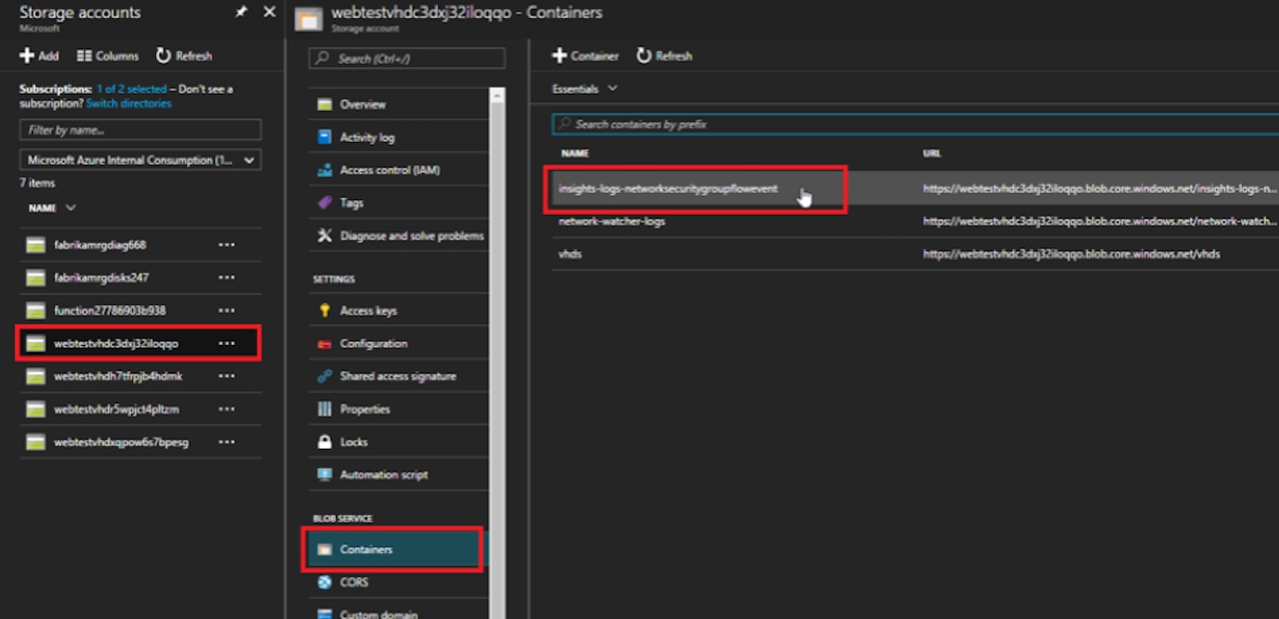 The NSG Flow Log data is kept in an Azure Storage blob container named insights-logs-networksecuritygroupflowevent.