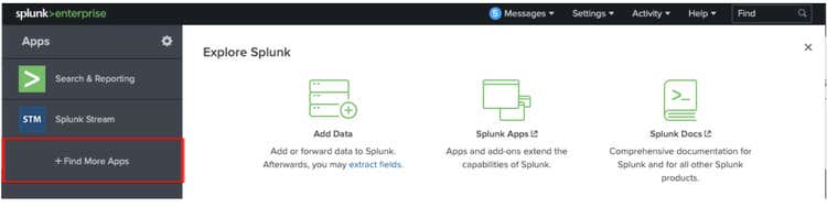 To install Splunk Sankey Diagram - Custom Visualization and Force Directed App for Splunk just download the app and unzip to $SPLUNK_HOME/etc/apps on your Search Head before restarting Splunk. You can also use the web ui at the Search Head to install both apps from Splunkbase by clicking in the “+ Find More Apps” section at the left-hand side of the landing page: