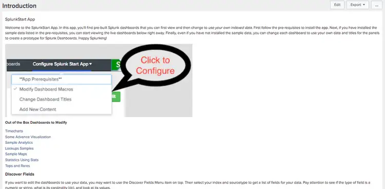 The result is you have out of the box dashboards showing your data with some analytics of the data. You can update the values for macros at any time to try them with new fields or time ranges, give a demo of what you did to others and get instant value out of your data as a beginner. The Show SPL button on each panel will help you learn how the underlying search was written to get you beyond beginner stage.
