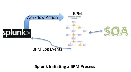 Any BPM that calls itself integration-ready will have the ability to communicate with the outside world using protocols such as HTTP. As you can see, Splunk is not only an initiator to the BPM, which is a gateway to a larger Service Oriented Architecture, but it is also the place to index the BPM logs to troubleshoot and provide further workflow actions on subsequent events. Unfortunately, I do not have a Splunkbase example for calling a BPM via a Splunk workflow action as each user will be using their BPM vendor of choice. However, the concepts are the same to initiate this call regardless of the vendor.