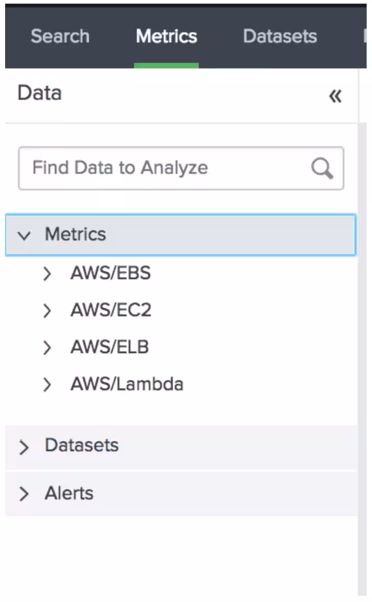 On the left side you should now see some of the metrics from Cloudwatch available to work with (in my case I have some EBS, EC2, ELB and Lambda metrics available):