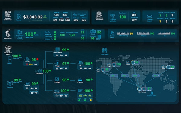 Monitor what matters most to the organization using performance dashboards that track KPIs and service availability.